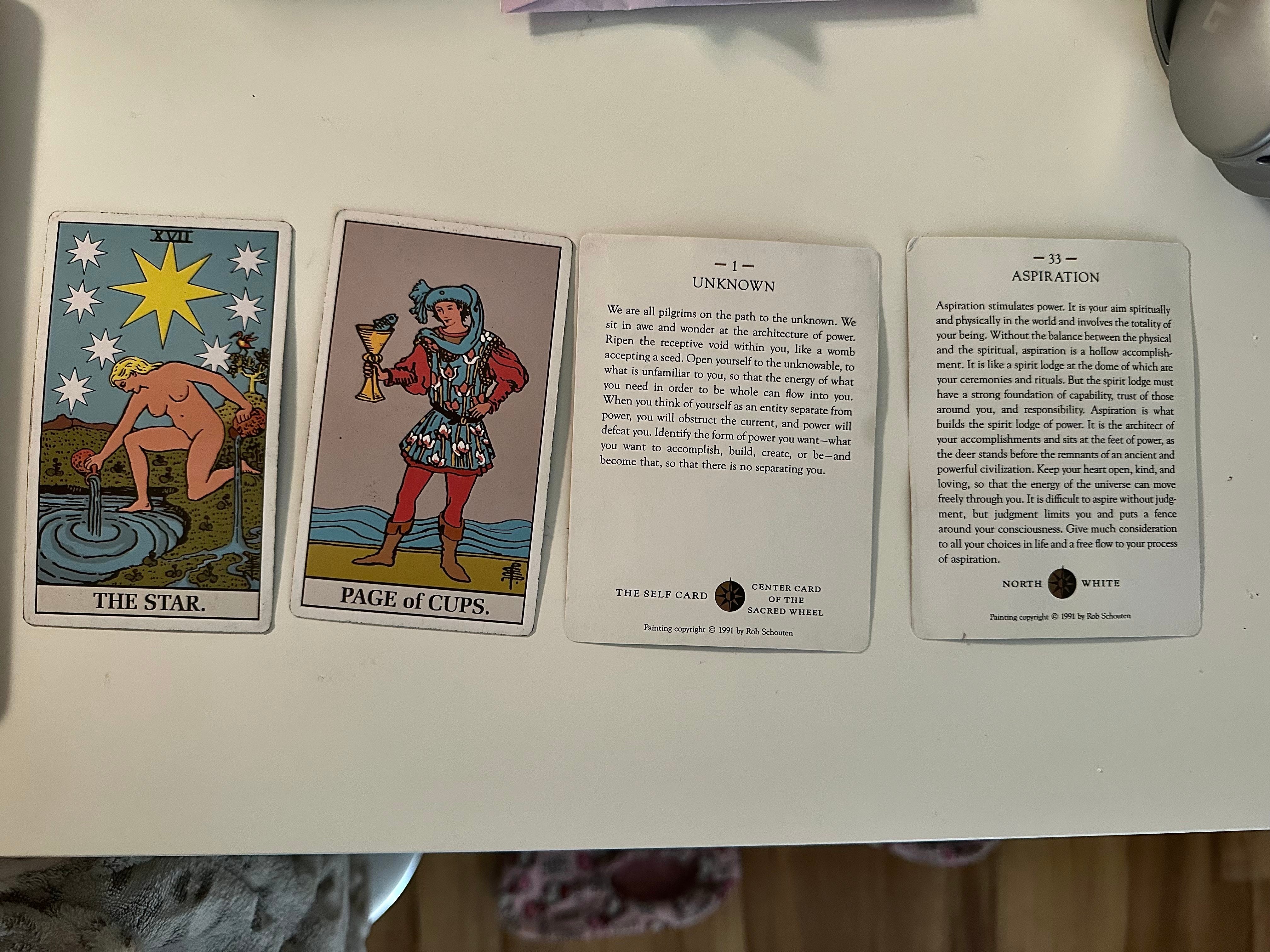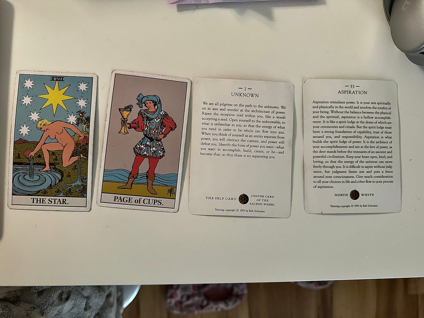 This major arcana card is a positive representation of inspiration, hope, renewed faith, and healing. Didn’t I just say in my post last night/this morning that healing was on the horizon?