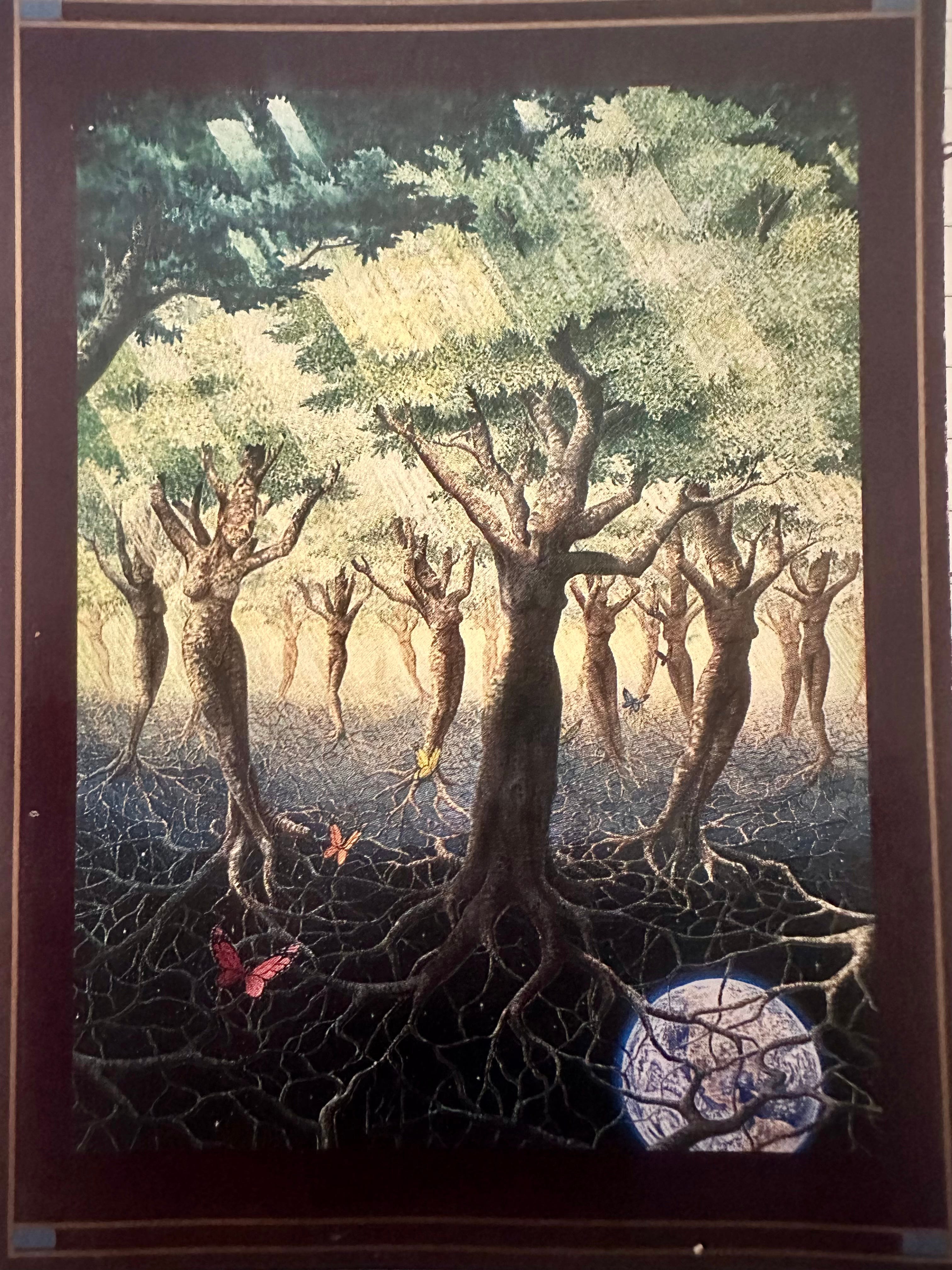 As a card from the West, it speaks to our emotional world. The artwork, Rob Schouten’s In the Garden of Eve, features tree-women “dreaming the Earth alive”, symbolizing the feminine spirit, and butterflies representing growth and transformation.