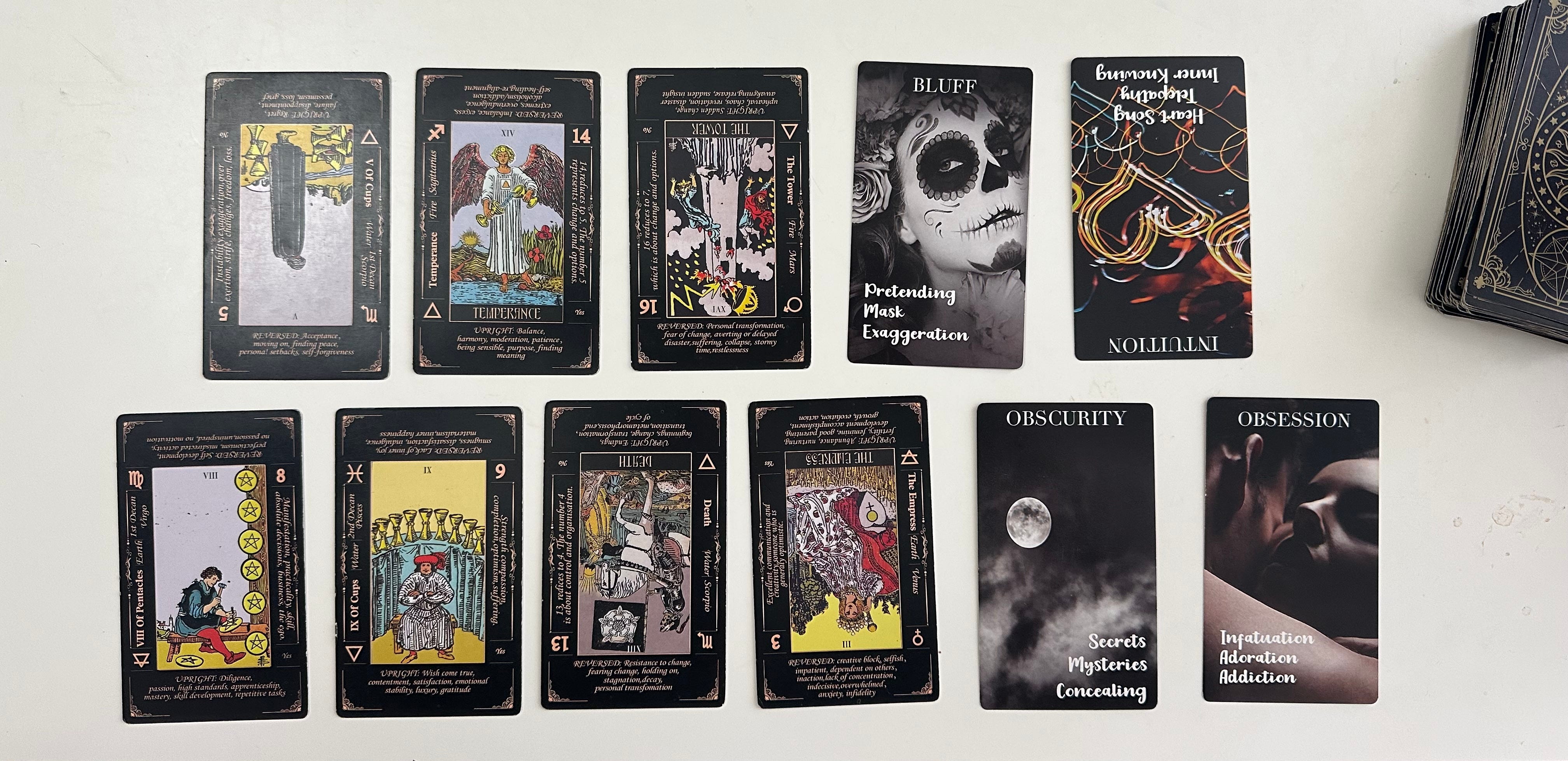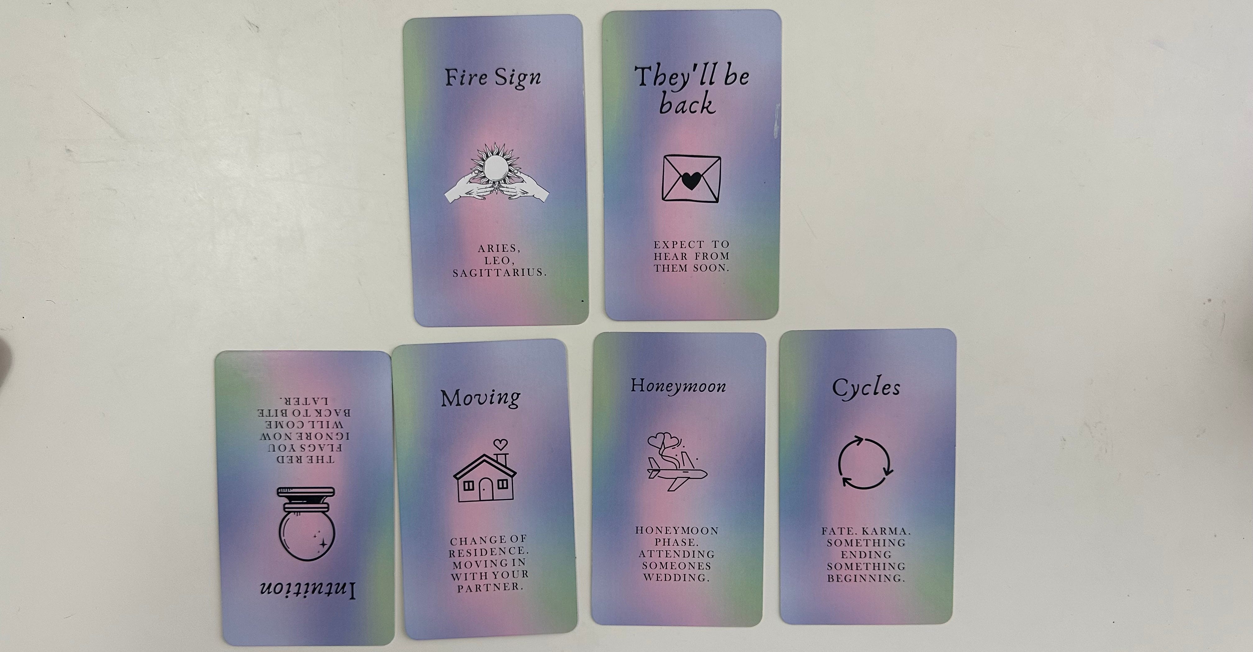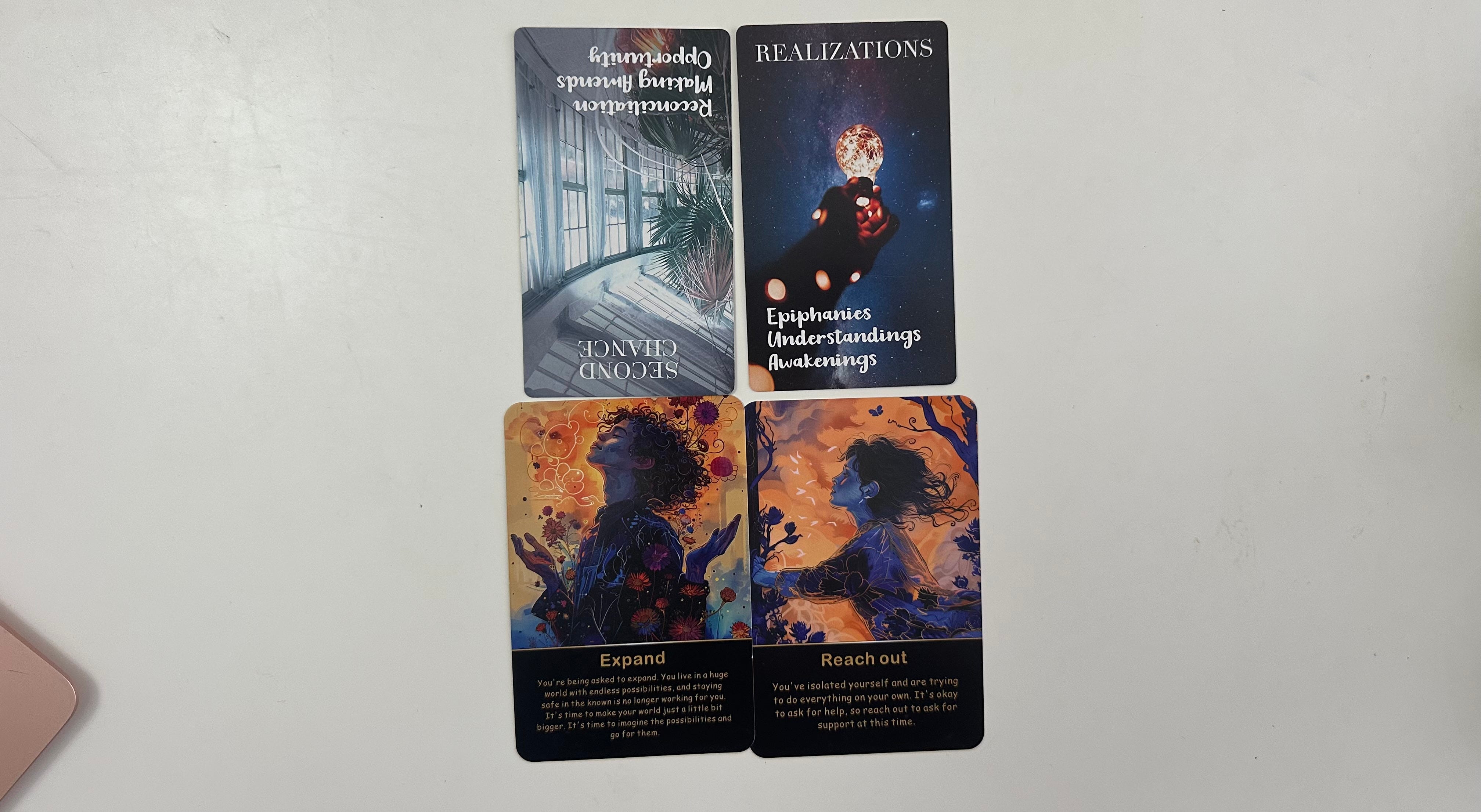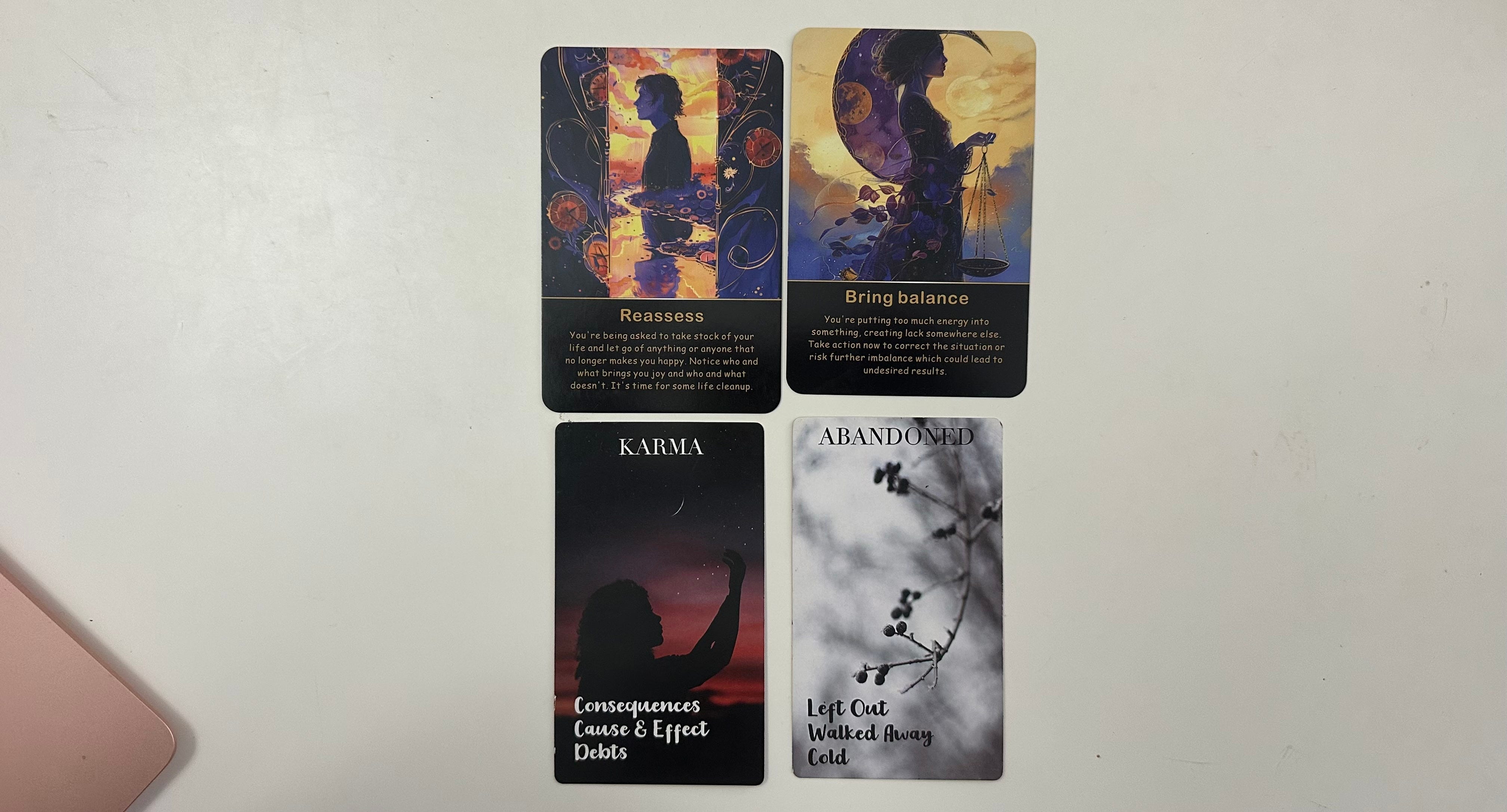Lastly, I ended with Fire signs (Aries, Leo, Sagittarius), They’ll Be Back, Moving, Honeymoon, Cycles, and Intuition reversed (again!). With Venus currently in retrograde, be mindful of past connections resurfacing—use discernment to determine if they’re returning for the right reasons. Karmic cycles are in motion, meaning some doors must close before new ones can open.
