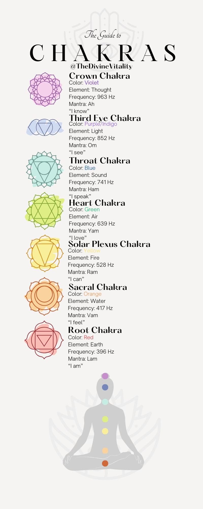 LOCATION: Top of the head COLOR: Violet ELEMENT: Thought AFFIRMATION: "I know" FUNCTION: Wisdom, information, awareness MANTRA: (AH) YOGA POSES: Headstand, Savasana, Tree Pose