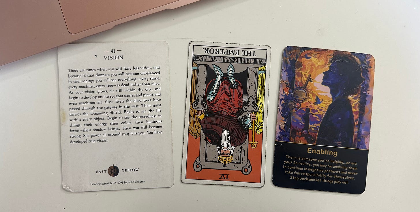 This week, I pulled the card Vision from The Power Deck and The Emperor Reversed from the tarot. Together, they paint an interesting picture of where the collective energy might be right now.